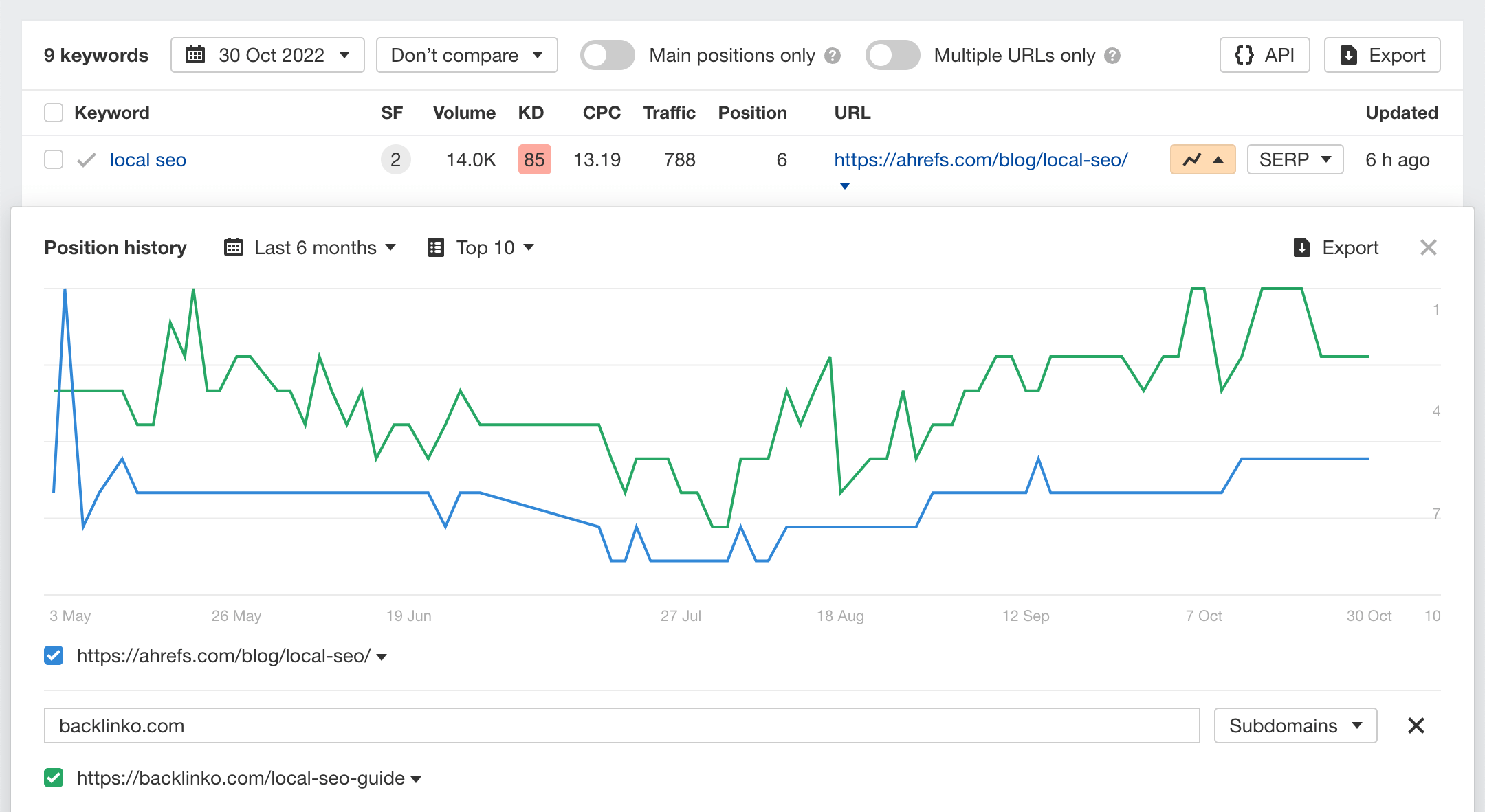 You can also compare your site's rankings for any keyword against the sites of up to five competitors.