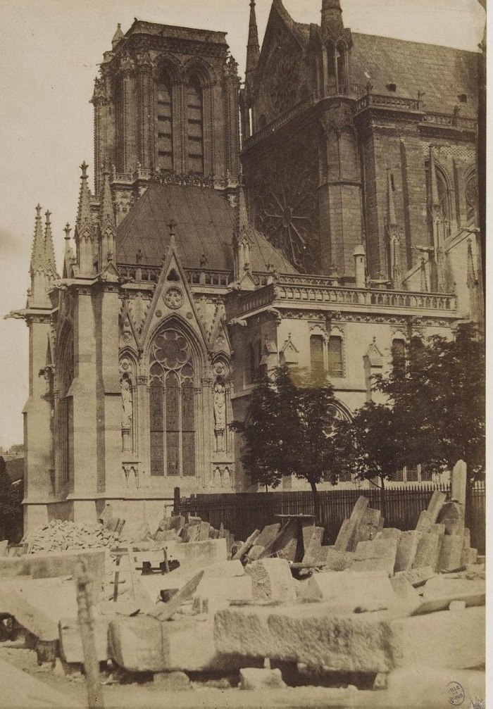 La cathédrale gothique Notre-Dame de Paris a connu bien des vicissitudes aux 18e et 19e siècles. L’évolution du goût et des usages amène le remplacement des vitraux de la nef en 1743 par du verre incolore, et ceux du chœur par du verre incolore également, en 1751. De même, le trumeau du portail est supprimé pour laisser passer les dais des processions.