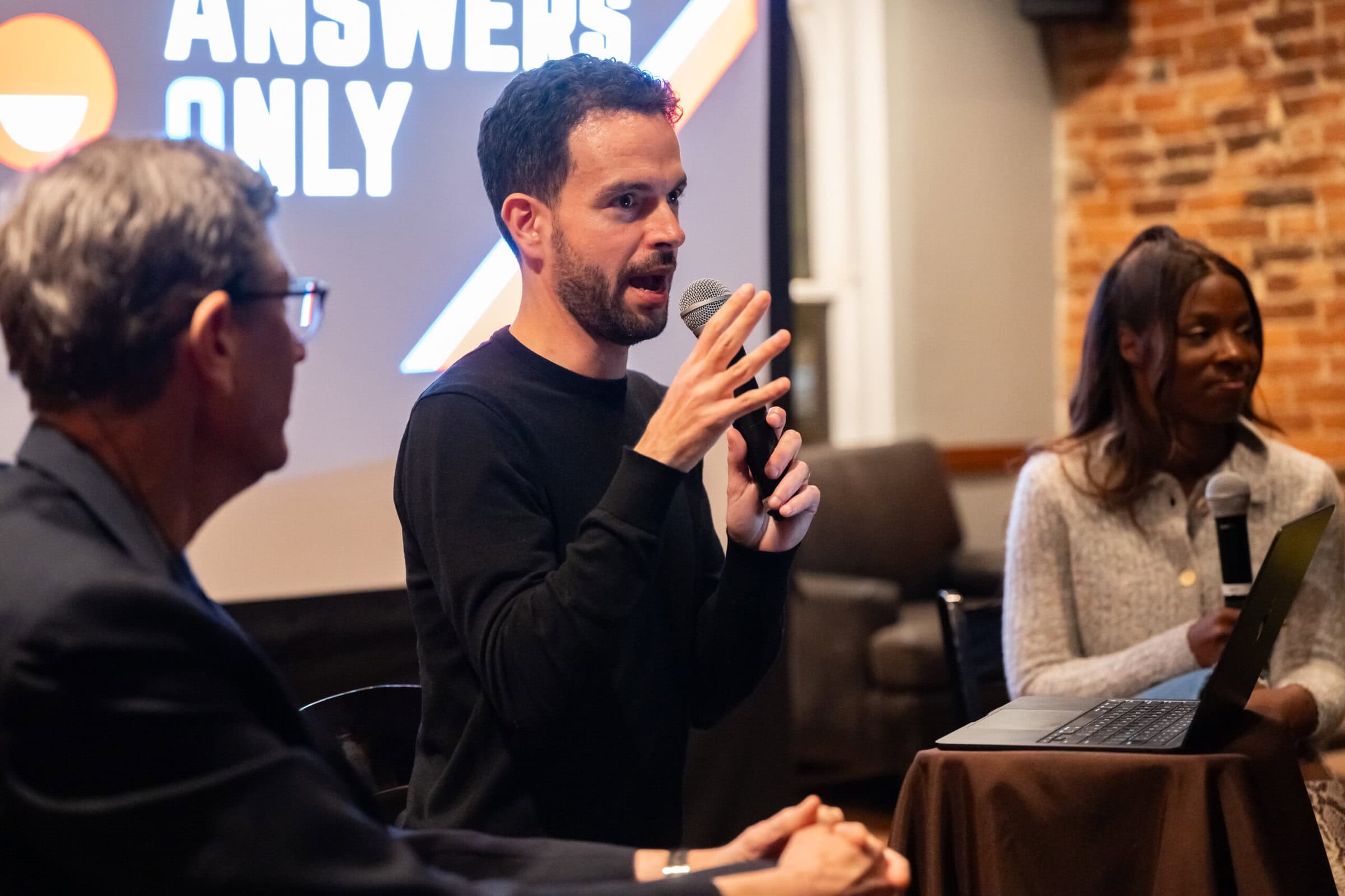 We brought Wrong Answers Only for a DC Debut edition at Sonoma Restaurant and Wine Bar right by Capitol Hill! Negin Farsad, Sydnee Washington, and Josh Gondelman chatted with Gene Robinson, the Director of the Carl R. Woese Institute for Genomic Biology who uses genomics and systems biology to study the mechanisms and evolution of social life, using the Western honey bee, Apis mellifera, as the principal model system along with other species of bees.