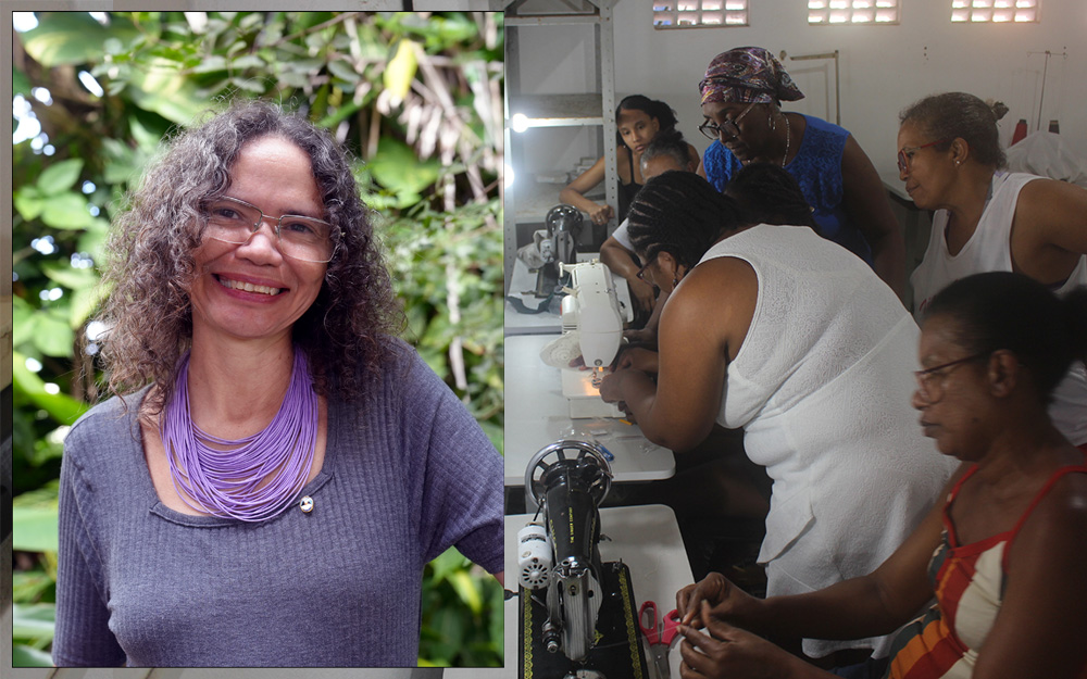 A oficina de Corte e Costura, ministrada pela professora Núbia Lourenzo, tem como objetivo ensinar mulheres de diferentes idades a desenvolver habilidades em costura, promovendo o aprendizado coletivo, a autonomia, e o fortalecimento da confiança e liderança entre as participantes.