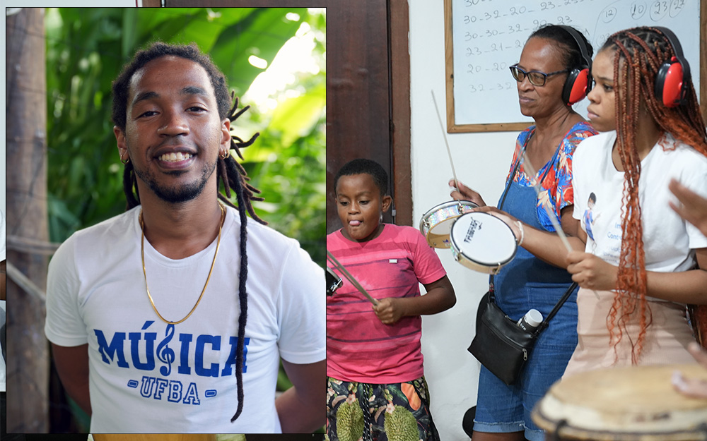 Com o Prof. Luan Badaró, a oficina visa difundir conhecimentos sobre tambores de matriz africana e afro-brasileira, trabalhando a prática em grupo, conscientização auditiva, postura corporal, técnica instrumental e a história dos instrumentos, para alunos a partir de 14 anos.