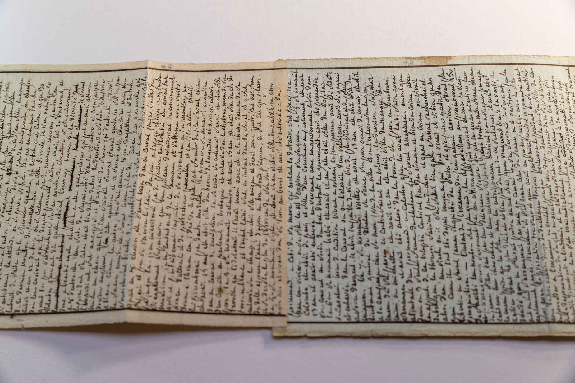 33 feuillets collés bout à bout pour un total de 11,85 mètres de long. Sur ce manuscrit, le Marquis de Sade a mis au net le texte des 120 journées de Sodome, dans son cachot à la Bastille en 1785. Acquis par la BnF en 2021, le rouleau a fait l’objet d’une importante campagne d’analyses, de restauration et de numérisation. Retour sur ce trésor littéraire exploré jusqu’au moindre détail, et exposé dans le musée de la BnF.