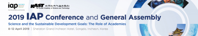 Nearly 200 leading scientists, policy practitioners, and delegates from some 60 science, health and engineering academies from around the world are scheduled to attend the 2019 IAP Conference ‘Science and the Sustainable Development Goals: The Role of Academies’ taking place in Incheon, Korea, at the Sheraton Grand Incheon Hotel (9-10 April 2019).