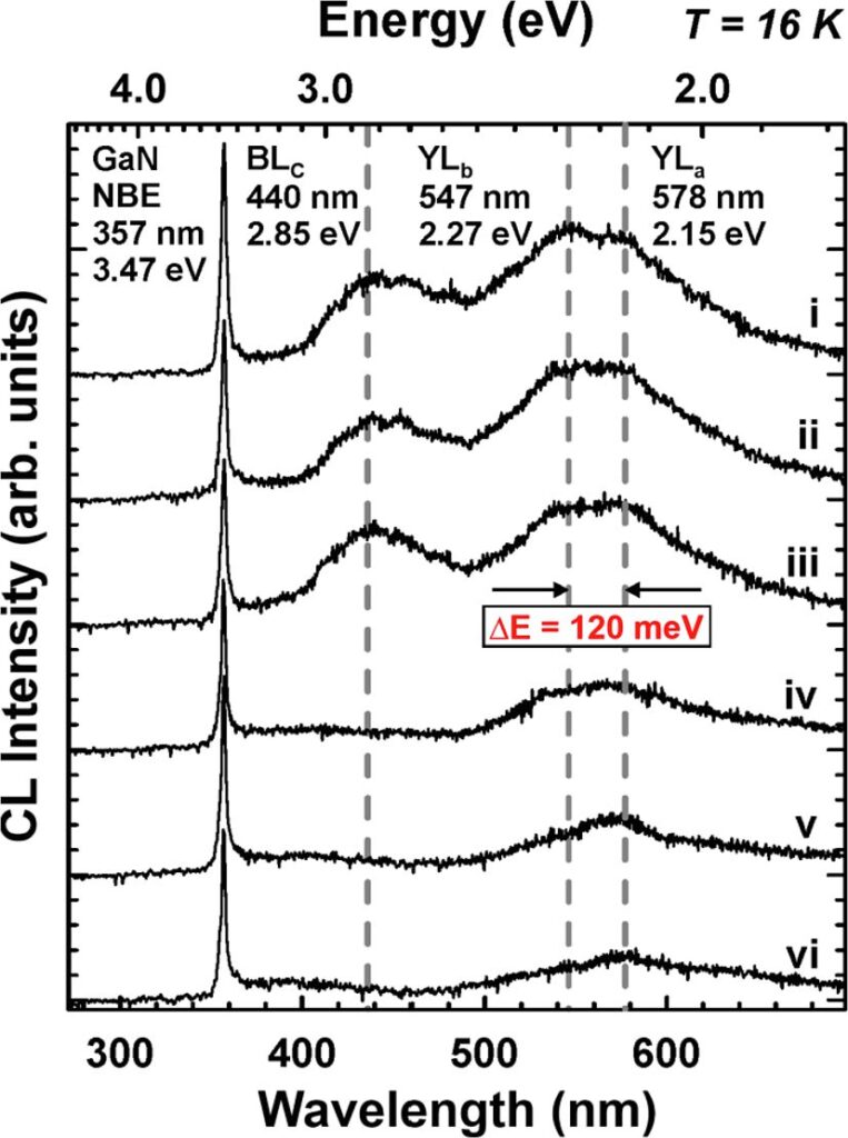 During the past years the growth of ultra-pure GaN/AlGaN heterostructures with atomically-smooth interfaces and surfaces on bulk GaN by molecular beam epitaxy (MBE) was established. The resulting layer stacks are a perfect reference system for fundamental material investigations as well as a test ground for novel electrical and optical device concepts. In particular, the role of carbon incorporation in GaN was re-visited. Carbon is a deep acceptor in GaN and historically considered to result in an impurity band around 2.2eV in photoluminescence studies, known as yellow luminescence (YL). Several years ago, it was already realized, that YL is also detected from GaN with no or a low level of incorporated carbon. Cathodoluminescence investigations at low temperature inside a transmission electron microscope (TEM) revealed, that two YL bands can be detected from carbon-doped GaN, while one around 2.15eV is also present for intrinsic material (Fig. 1). YL results from carbon incorporation, but in intrinsic material there must be a hitherto unknown deep acceptor present, which also results in a YL band. This unknown deep acceptor has a similar binding energy as carbon, reflected in the difference of 120meV between the two YL bands.