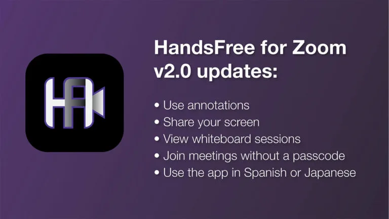 The big changes with HandsFree for Zoom 2.0 come in the form of some neat new features and updates: