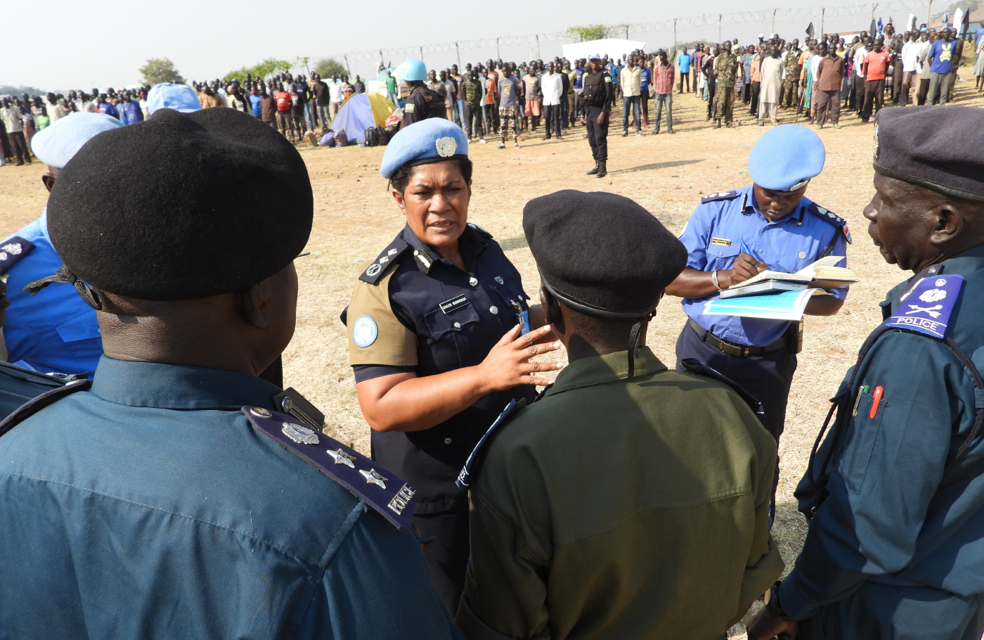 Unaisi Bolatolu-Vuniwaqa is the first woman to serve as Police Commissioner with the UN Mission in South Sudan (UNMISS). She began her service as a police officer, rising quickly through the ranks to command the Fijian UN police contingent before becoming Deputy Police Commissioner and then Police Commissioner. Since her appointment in 2018, she has been working with countries to increase the deployment of women police officers. Here, Commissioner Bolatolu-Vuniwaqa speaks to members of the South Sudanese police force.